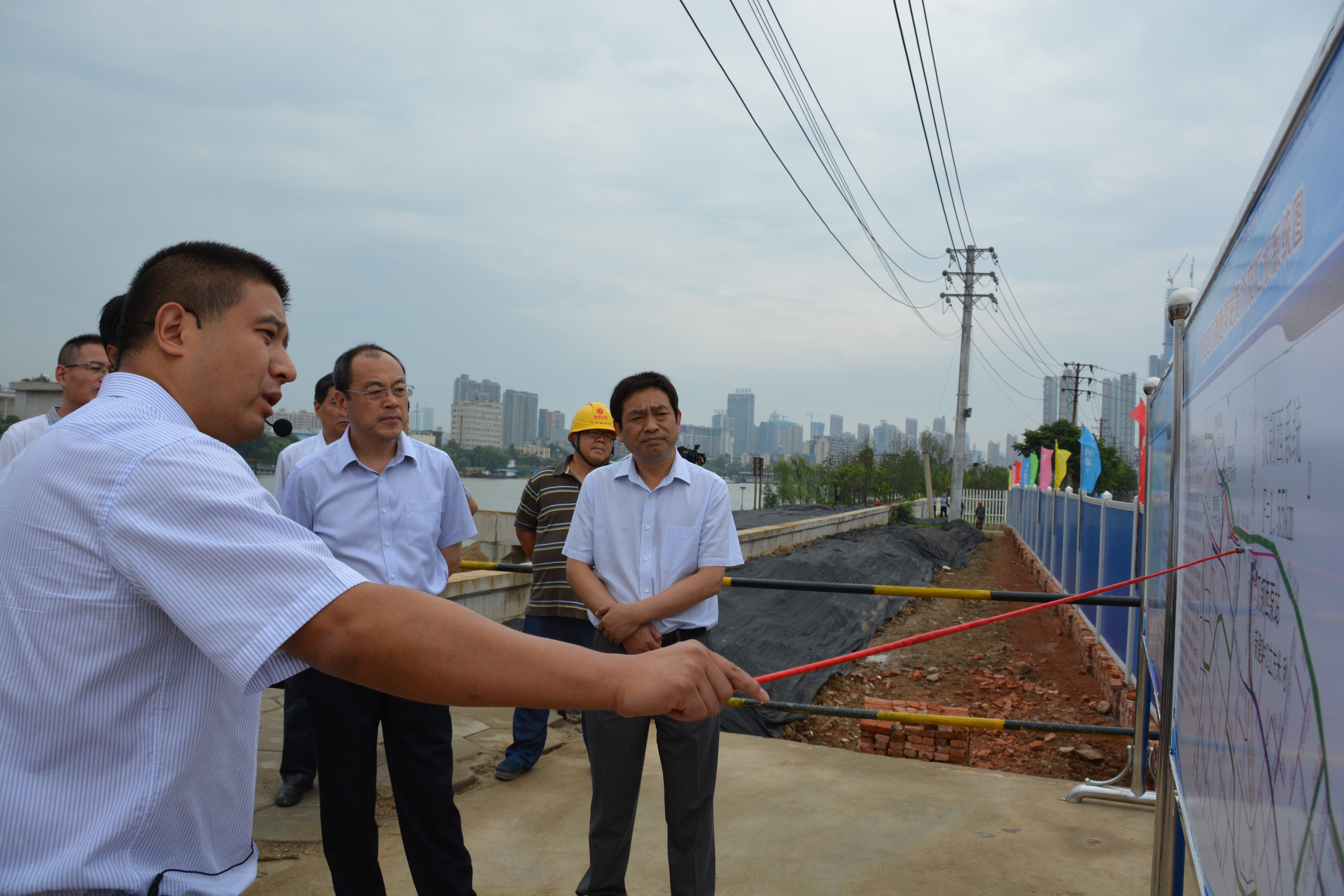 漢鋼西泵站升級工程已近尾聲,阮成發(fā)首先通過一系列展板了解到該工程的建設情況、工作流程等。隨后,阮成發(fā)一行來到漢鋼西泵站項目部會議室,進一步認識了該工程對解決漢陽琴臺大道華潤段“逢雨必漬”問題的重要性,并督促抓緊完工投用,及時滿足當?shù)嘏潘艥n需求。