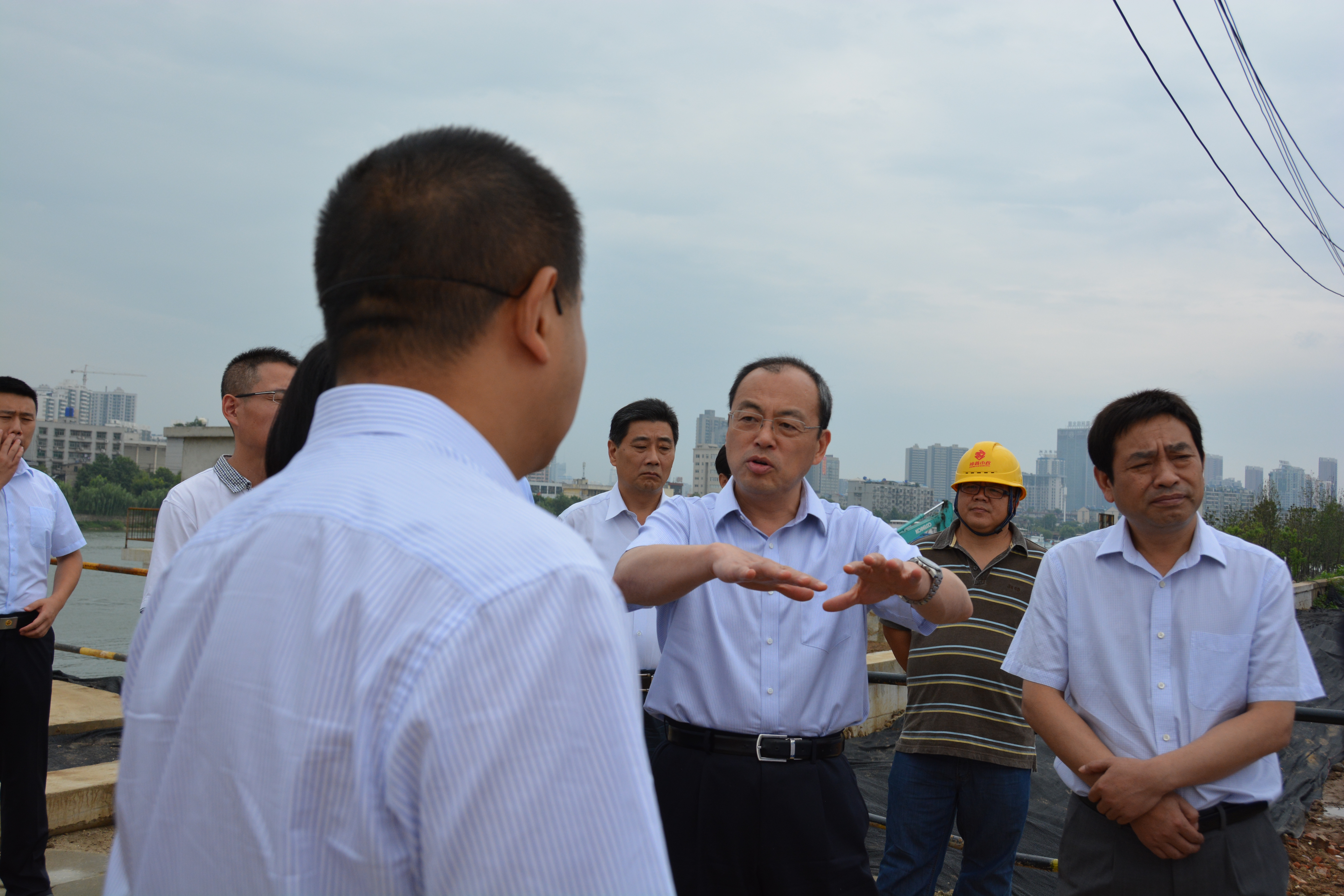 7月6日上午,省委常委、市委書記阮成發(fā)率隊檢查全市防汛抗旱工作,其中一站就是由鐘鑫公司承建的漢鋼西泵站工程。