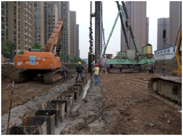 水泥攪拌樁作為整個(gè)雨水箱涵工程的關(guān)鍵,項(xiàng)目部充分重視質(zhì)量,施工前首先進(jìn)行試樁試驗(yàn)和委托有資質(zhì)的第三方配合比實(shí)驗(yàn),各項(xiàng)工作準(zhǔn)備妥當(dāng)后采用流水施工作業(yè),嚴(yán)格把控成樁質(zhì)量。為保證不影響后期施工進(jìn)度,我部綜合考慮增加施工機(jī)械實(shí)行24小時(shí)作業(yè)。