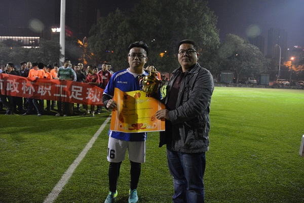 11月4日晚上7:00,2016年第九屆“漢陽市政杯”職工足球比賽決賽在新華路體育館外場舉行,由漢陽市政集團隊與新區(qū)代表隊爭奪冠亞軍。在觀眾的加油聲中,漢陽市政集團隊不負(fù)眾望,最終以3:1的比分獲得了本次比賽的冠軍。鐘鑫市政公司在比賽中表現(xiàn)優(yōu)異,榮獲優(yōu)勝獎。集團公司與各分公司領(lǐng)導(dǎo)均出席了閉幕式。閉幕式上我公司涂軼銘書記為冠軍隊伍進行了頒獎,最后由我公司方紫微總經(jīng)理致閉幕辭。到此“漢陽市政杯”2016年職工足球比賽閉幕。