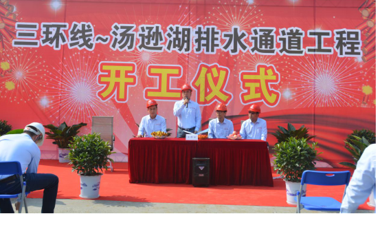 開工典禮儀式在9點(diǎn)18分正式啟動(dòng),漢陽市政四公司項(xiàng)目經(jīng)理劉小勇正式宣布工程開工。漢陽市政四公司總經(jīng)理涂軼銘致辭。涂軼銘在致辭中表示,本次三環(huán)線-湯遜湖排水通道工程是武漢市“四水共治”建設(shè)工程的一大重點(diǎn),也是武漢市排水惠民民生工程的重要一站,業(yè)主武漢地鐵集團(tuán)高度重視,對工程的招標(biāo)要求極高,從20余家投標(biāo)單位中精心篩選出最合適的單位,對此項(xiàng)工程高度負(fù)責(zé)。涂軼銘表示,本次排水通道工程是漢陽市政繼中標(biāo)夾套河骨干箱涵工程后在水務(wù)市場的再一次“蝶變”,漢陽市政將牢記企業(yè)“誠實(shí)、信譽(yù)、優(yōu)質(zhì)、創(chuàng)新”的精神,以鐵的意志、鐵的制度、鐵的紀(jì)律和鐵的執(zhí)行力,竭盡全力,精心準(zhǔn)備,謹(jǐn)記質(zhì)量安全文明生產(chǎn)理念,提高施工技術(shù)和管理水平,六個(gè)月后如期向業(yè)主交付一份滿意的答卷。