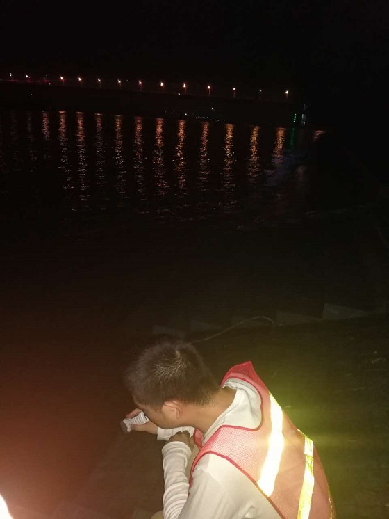 圖為鐘鑫公司職工夜間12點(diǎn)巡查水位