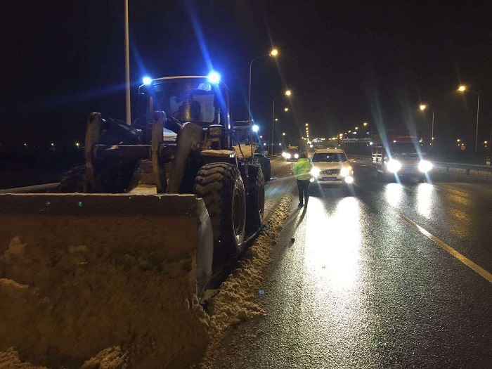 時間來到27日晚上23時,在三環(huán)線白沙洲大橋——國博大道路段,漢陽市政鐘鑫公司的搶險隊伍在漢陽市政集團副總經(jīng)理、鐘鑫公司董事長方紫微的帶領和指揮下,克服白天一整天抗雪搶險的疲憊感,緊急調度機械設備和搶險人員,連夜前往搶險路段奮戰(zhàn)3小時,在寒冷冬夜順利完成了搶險任務。