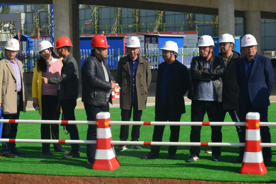 11月19日下午,中鐵上海工程局華海工程有限公司總經濟師張體權、總工程師劉習生及副總經理閆曉東一行八人來到漢陽市政鐘鑫公司月亮灣、5號線7標現場考察交流。漢陽市政鐘鑫公司總經理盧永紅、總工程師汪定國等陪同考察。