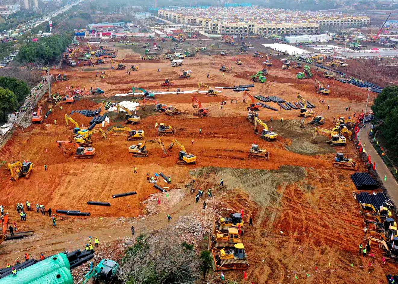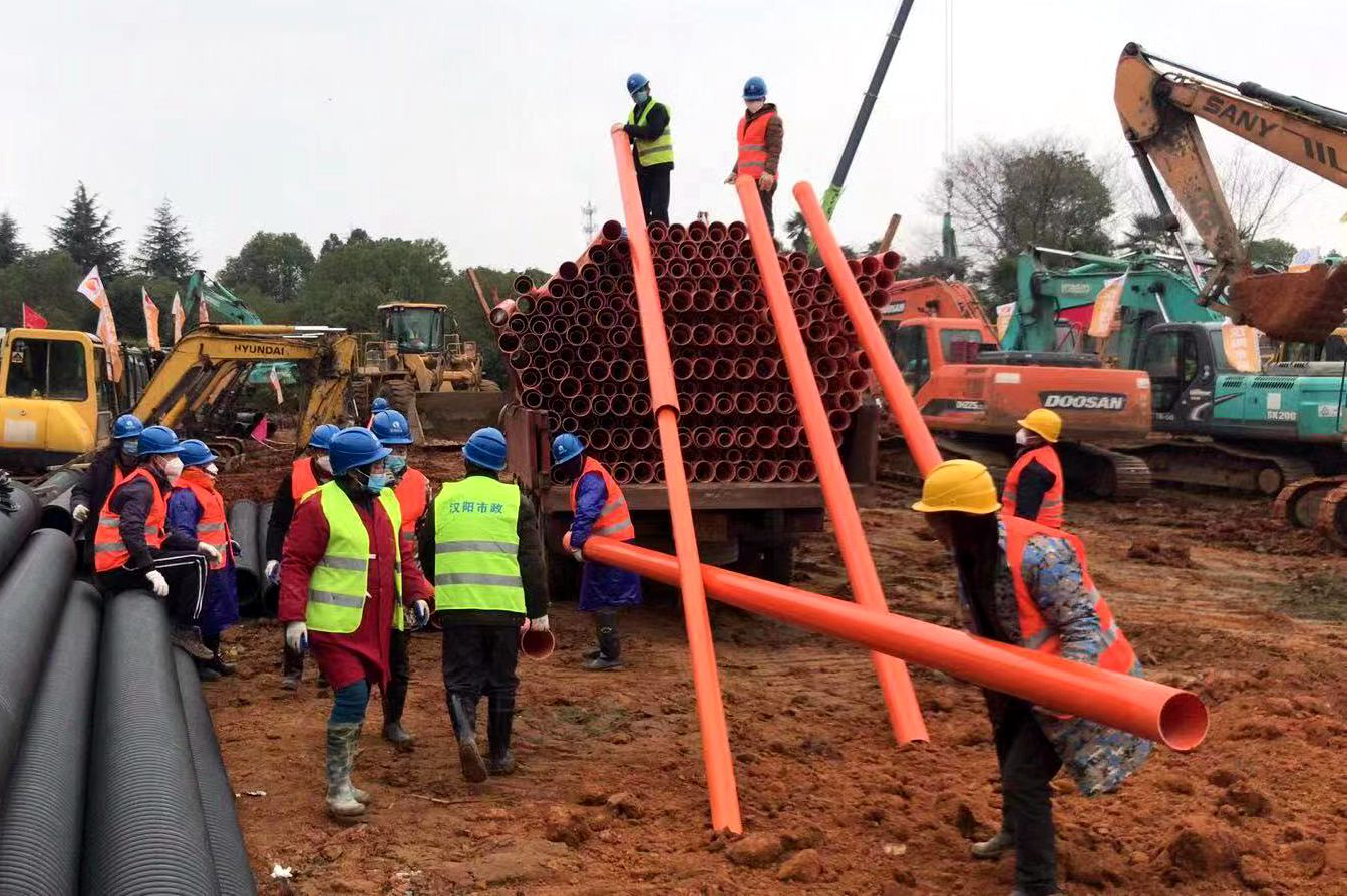 1月23日,自接受參建“火神山”醫(yī)院任務(wù)后,公司領(lǐng)導第一時間組織調(diào)派人手趕赴現(xiàn)場,共集結(jié)公司管理人員30人,勞務(wù)隊員170余人,18臺挖掘機、2臺推土機及2臺壓路機,負責醫(yī)院二工區(qū)場地及管線建設(shè);公司董事長曹元鑫、總經(jīng)理盧永紅兩天一班,輪流駐扎現(xiàn)場負責調(diào)度指揮;現(xiàn)場管理人員采取兩班倒、24小時不間斷作業(yè),在全體人員不辭辛勞的努力下,順利在2月2日完成各項施工任務(wù),實現(xiàn)交工。