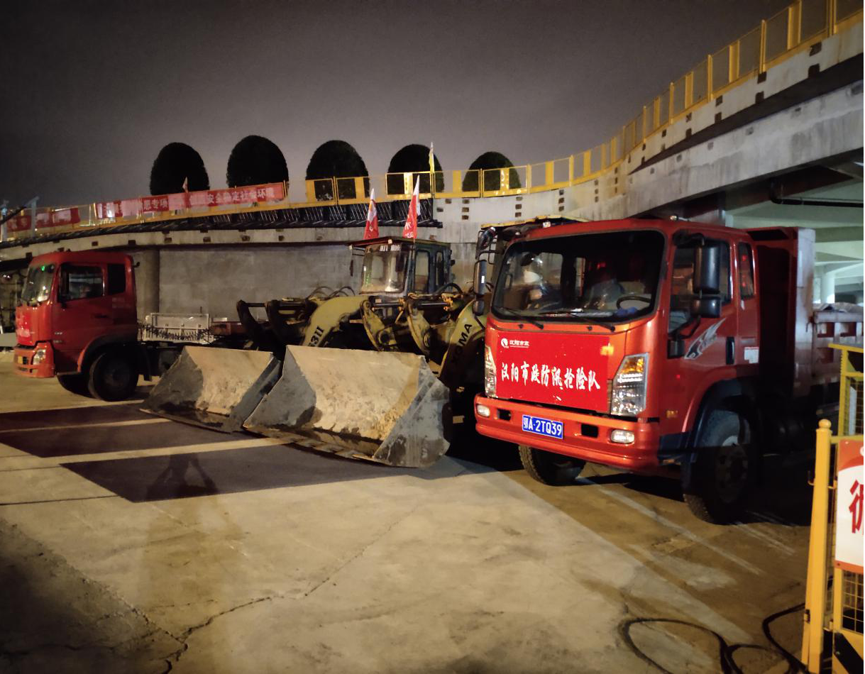 韓偉一行首先查看了長(zhǎng)江的汛情和月亮灣項(xiàng)目部的防汛準(zhǔn)備工作。月亮灣項(xiàng)目地處臨江區(qū)域,屬月亮灣險(xiǎn)灘,面臨著防汛搶險(xiǎn)的嚴(yán)峻考驗(yàn)。因此,在汛情前期,項(xiàng)目部就做好充分準(zhǔn)備,積極籌備鏟車(chē)2臺(tái),拖車(chē)1臺(tái),挖機(jī)2臺(tái)及10余類(lèi)防汛器械,確保防汛物資充足;并確立了項(xiàng)目領(lǐng)導(dǎo)帶班值守巡查制度,組織25人成立應(yīng)急搶險(xiǎn)小組,24小時(shí)輪流駐守在防汛應(yīng)急值守點(diǎn)。同時(shí),項(xiàng)目部還暫停現(xiàn)場(chǎng)部分基坑開(kāi)挖和樁基施工工序,在保證不影響施工進(jìn)度的情況下,以萬(wàn)全的準(zhǔn)備應(yīng)對(duì)汛期的到來(lái)。韓偉檢查了一工區(qū)的防汛應(yīng)急值守點(diǎn),查看了倉(cāng)庫(kù)中的各類(lèi)防汛物資及設(shè)備,了解了項(xiàng)目上的值班制度、值守人員巡視職責(zé)、搶險(xiǎn)應(yīng)急方案等。