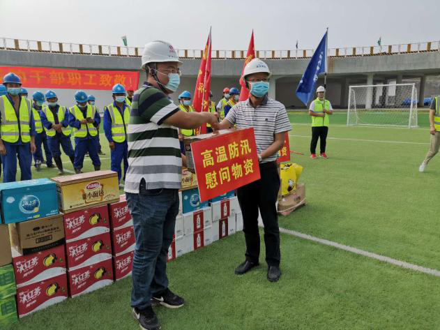 7月20日下午,武漢市城市建設(shè)投資開發(fā)集團(tuán)有限公司副總經(jīng)理盛華、漢陽(yáng)市政建設(shè)集團(tuán)有限公司常務(wù)副總經(jīng)理王智高一行赴月亮灣城市陽(yáng)臺(tái)項(xiàng)目施工現(xiàn)場(chǎng)進(jìn)行高溫慰問,鐘鑫公司總經(jīng)理盧永紅陪同。盛華一行看望并慰問了由鐵投公司牽頭組建的防汛搶險(xiǎn)突擊隊(duì)25名隊(duì)員,并為他們送去了純凈水、面包、牛奶、王老吉、雨衣及雨傘等數(shù)類高溫防汛慰問物資。盛華對(duì)炎炎烈日下堅(jiān)守在防汛抗洪一線的25名防汛突擊隊(duì)隊(duì)員表達(dá)了肯定及感謝,并叮囑防汛人員要繼續(xù)發(fā)揚(yáng)吃苦耐勞、積極奉獻(xiàn)的精神,嚴(yán)格落實(shí)防汛排漬工作,打好防汛抗洪攻堅(jiān)戰(zhàn)。