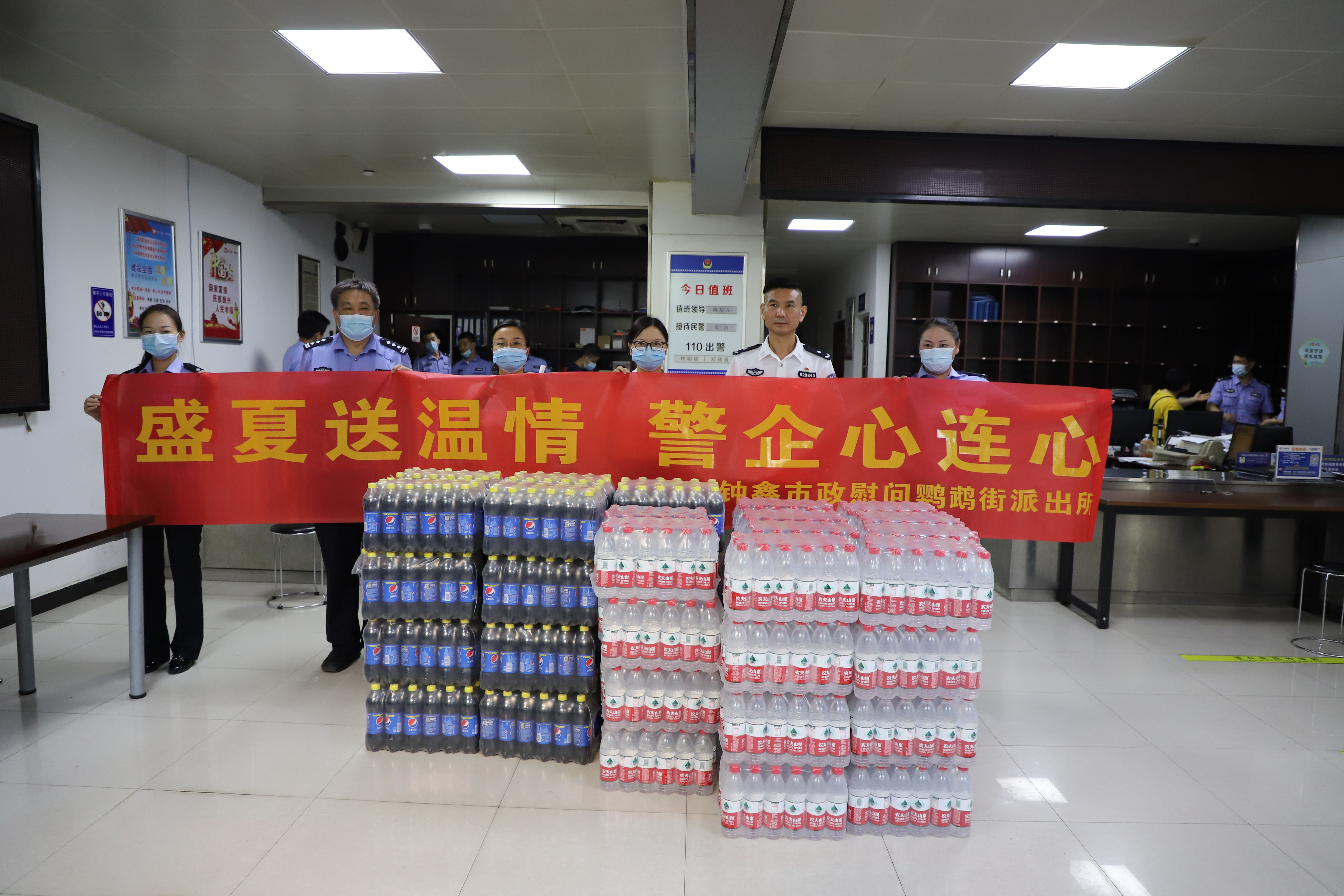 8月份的武漢,酷暑難耐,烈日下,街道的基層民警還在為防疫防汛工作而奔勞。8月19日上午,為感謝鸚鵡街派出所的民警同志們在疫情防控期不懼危險(xiǎn),始終堅(jiān)持一線,在防汛排澇中日夜堅(jiān)守,守護(hù)江城人民安全,漢陽市政鐘鑫公司特購買防暑降溫物資,由工會主席肖艷霞帶隊(duì)前往鸚鵡街派出所,慰問這些默默守護(hù)人民生命財(cái)產(chǎn)安全的基層民警。