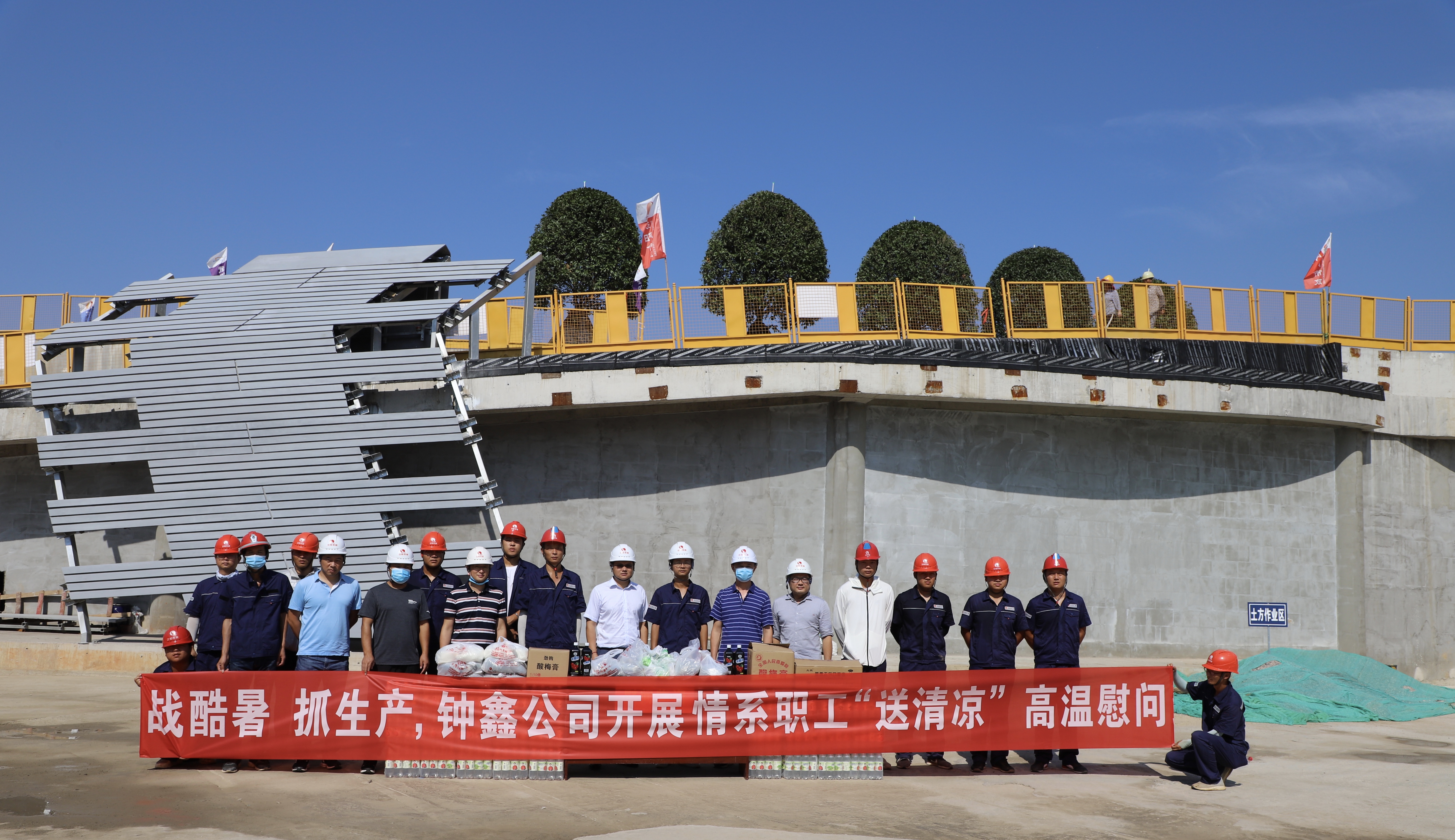 在項目現(xiàn)場,陳俊俊對廣大一線員工頂烈日、戰(zhàn)高溫、保生產(chǎn)的精神給予充分肯定,并為他們送去了酸梅膏、綠豆、礦泉水、防暑藥品等多樣防暑降溫用品。每到一處,在詳細了解各項目生產(chǎn)工作推進情況后,他都叮囑施工人員一定要合理調(diào)度,錯時施工,全面落實防暑降溫各項舉措,在鼓足干勁搶抓生產(chǎn)的同時,注意身體健康,為進一步開展生產(chǎn)工作儲蓄力量。