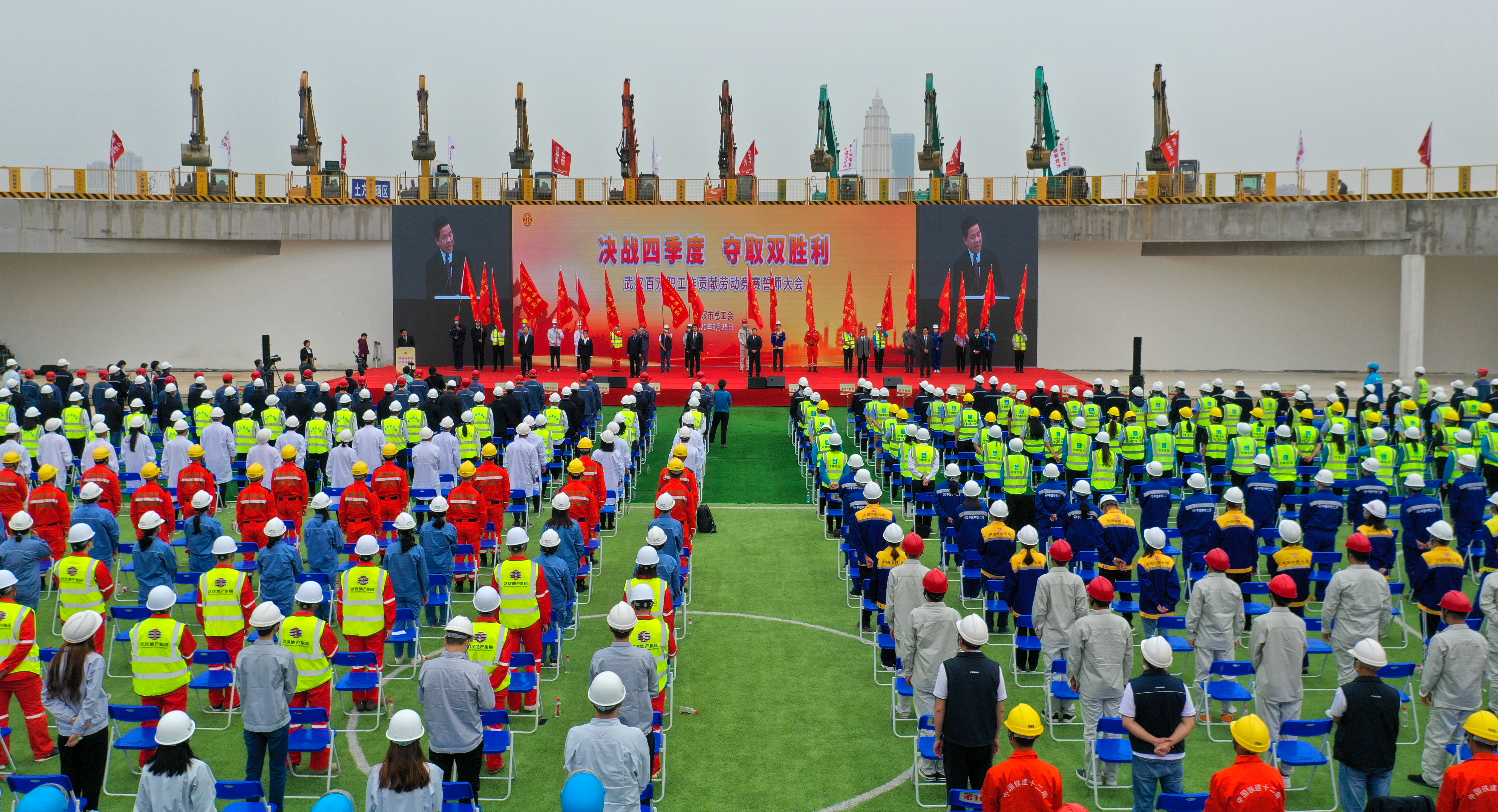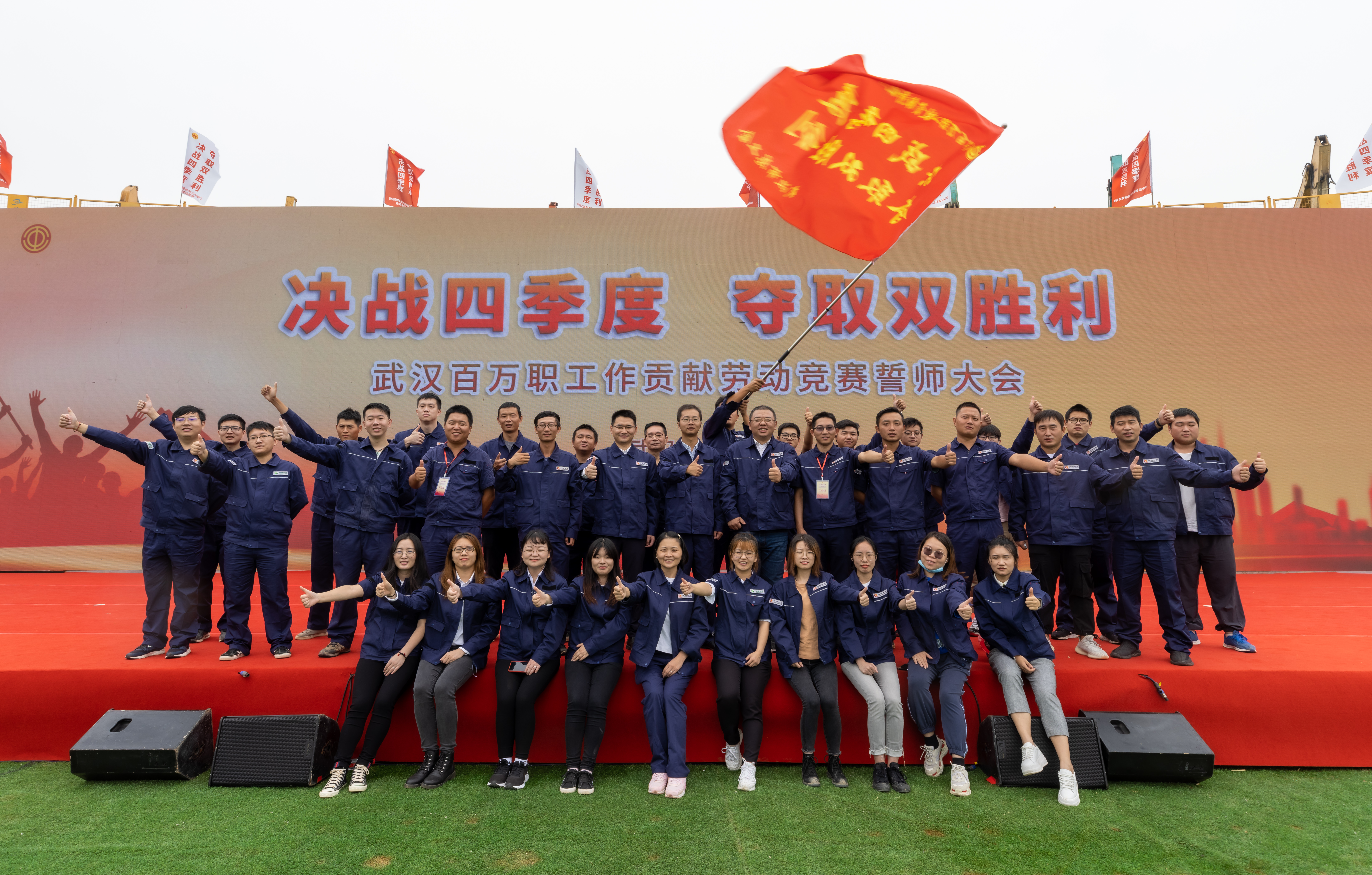 武漢,曾是新冠肺炎疫情的“風(fēng)暴眼”,如今成為中國(guó)經(jīng)濟(jì)疫后重振的風(fēng)向標(biāo)。在全市深入貫徹學(xué)習(xí)習(xí)近平總書記在全國(guó)抗擊新冠肺炎疫情表彰大會(huì)上的重要精神講話,大力弘揚(yáng)偉大抗疫精神,奮力打造“疫后重振武漢樣板”的關(guān)鍵時(shí)刻,9月25日上午,以“決戰(zhàn)四季度、奪取雙勝利、武漢百萬(wàn)職工作貢獻(xiàn)”為主題的勞動(dòng)競(jìng)賽誓師大會(huì)在全市重點(diǎn)工程工地——漢陽(yáng)市政月亮灣城市陽(yáng)臺(tái)項(xiàng)目隆重舉行,以建筑行業(yè)為代表的20余個(gè)行業(yè),190家單位,700余名一線建筑勞動(dòng)者齊聚大會(huì)現(xiàn)場(chǎng),共同見(jiàn)證武漢復(fù)工復(fù)產(chǎn)后大干快趕、比拼趕超勞動(dòng)盛況。