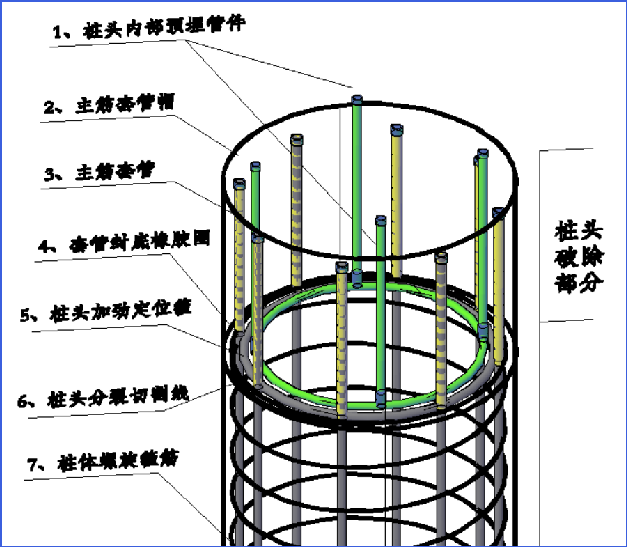 (2)研發(fā)了臨江富水地層基礎(chǔ)施工關(guān)鍵技術(shù),解決了灌注樁樁頭靜態(tài)破除、長(zhǎng)螺旋鉆機(jī)自動(dòng)清土等施工難題,提高了基礎(chǔ)施工效率,踐行了綠色施工理念。